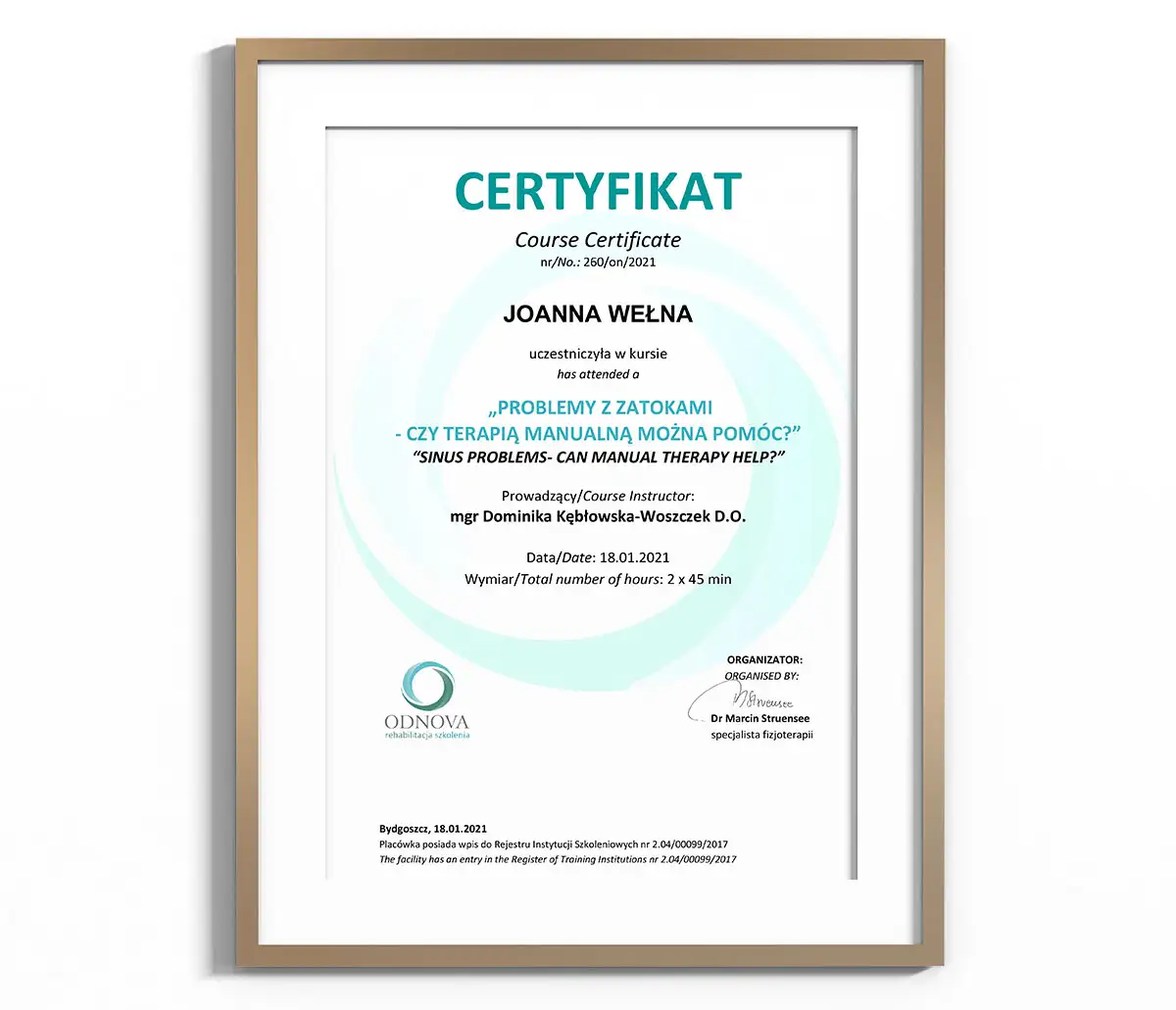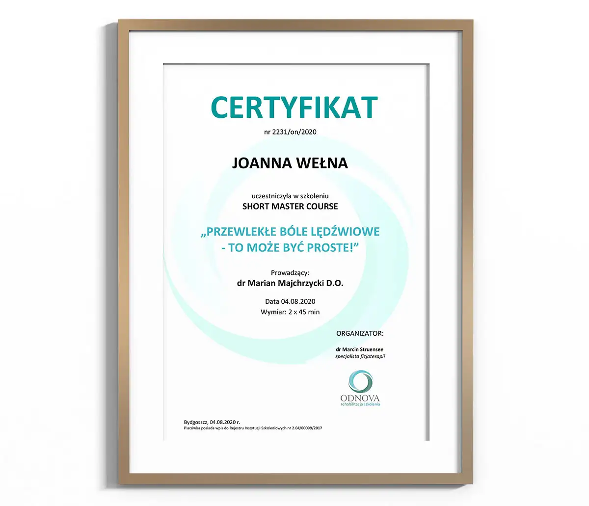 Terapię manualną i akupunkturę stosuję od kilku lat w swojej przychodni weterynaryjnej, udaje mi się pomóc odzyskać zwierzakom radość i komfort życia oraz szybko przywrócić do sprawności pacjentów sportowych lub po urazach neurologicznych, jeśli tylko zachowana jest ciągłość układu nerwowego. Praca z ciałem stała się moją pasją, a dociekanie skąd wziął się dany problem i jak zapobiec mu w przyszłości, oraz jak wyleczyć przyczynę jego powstania sprawiają mi ogromną satysfakcję. Chciałabym tą pasję przekazać dalej, tak, żeby terapia manualna rozwijała się z korzyścią dla naszych małych pacjentów.