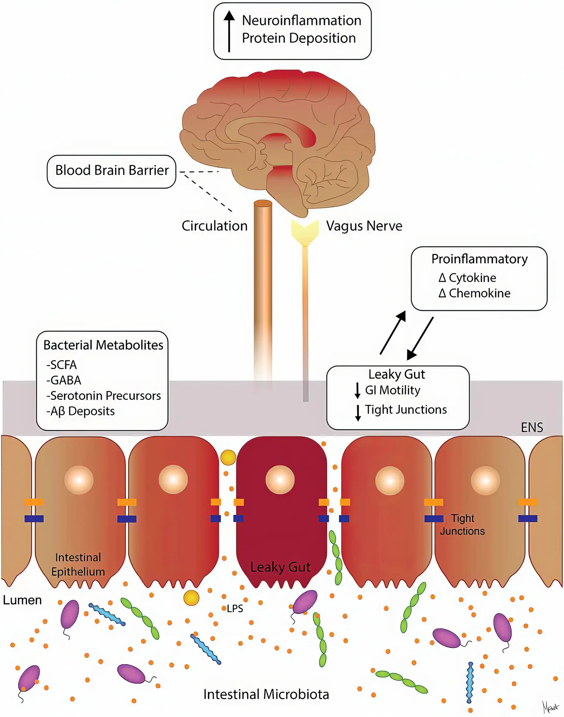 Oś jelito-mózg, taje się jednym z najważniejszych obiektów badań. Jak stwierdził Allan M. Goldstein, MD ’93, Marshall K. Bartlett Professor of Surgery z Harvard Medical School „Wzrasta liczba dowodów naukowych na to, iż mikrobiom bakteryjny jelit i ich produkty przemiany materii wpływają na nastrój, zdolności poznawcze i zachowanie”.